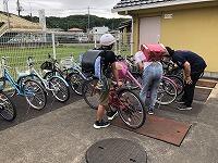 中には、自分の自転車の右側を歩いている子も見られ、「体が自転車の左側に」なるように持ち変えるよう声を掛けました。