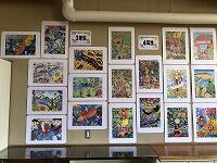 【図工室】学年ごとに「参考作品」を掲示してあります。また参考作品は引き出しの中にも保管してあるので、同じような題材の学習をするときに、生かせると思います