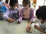 3月11日(木)の図工の時間に、牛乳パックを使って「こま」を作りました。組み合わせることが、とても難しかったですが、完成して回ったときは、とても喜んでいました。色の塗り方も工夫していました。