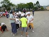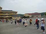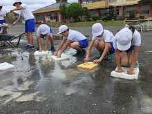 5月8日(火)、運動会の全体練習が始まりました。今日は一回目ということで、服装や整列の仕方などを確認したあと、みんなでラジオ体操を練習しました。昨日の雨で、校庭には水たまりがあったのですが、業間活動の前に6年生がスポンジで水取りを行い、無事に練習を終えることができました