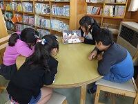 ワールドグループの高学年が低学年と1対2または2対2のペアになり読み聞かせを行うというもので、読む場所も自分たちで決めました。