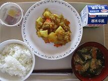 今日の給食のメニューは、「ご飯 牛乳 納豆 カレー肉じゃが にらのかき玉汁」でした。