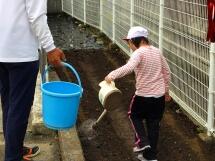 すみれ学級では栽培活動で色々な野菜を育てています。1学期はミニトマト、坊ちゃんかぼちゃ、ポップコーンを育てて収穫することができました。2学期はほうれん草、青梗菜の栽培をすることになりました。タネを買いに行き、業務員の石塚先生に教わりながら種まをしました。