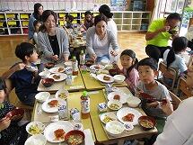 給食を食べた保護者のアンケート結果では、「味付けについて」・・・ ちょうど良い12名・やや薄め4名、「量について」・・・ ちょうど良い13名、やや少ない1名、やや多い2名 の結果でした。(16名中)