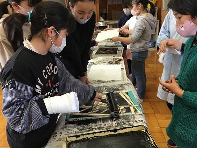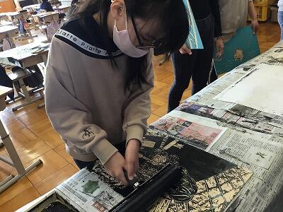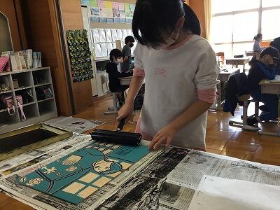 いかがでしたか??時間をたくさんかけて、一生懸命仕上げました。ぜひ、持ち帰った作品を近くでみてくださいね。きっと子どもたちの頑張りが作品から伝わることと思います。来年の図工の木版画も楽しみですね!!