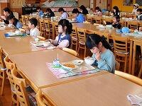 1年生は初めてのランチルームでの給食です。嬉しそうに給食を食べていました。