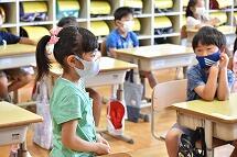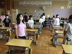プール開きは、密を避けるために放送で行いました。各学年とも立派な態度で,校長先生のお話や児童代表のお話を聞くことができました。