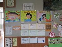 保健室前には、ポスターや標語、保健安全委員が作成した歯に関するクイズを掲示しました。
