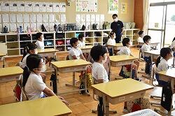 みんな真剣に聴きながら千塚小の誕生日を祝うことができました。