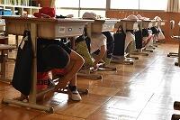 ↓↓ 放送の合図で、机の下にもぐって、頭や体を落下物から守ります。