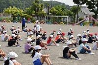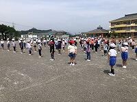 全員避難ができたことの確認が終わったので、間隔を開いて並び直してから、安全担当の先生、校長先生の話を聞きました。