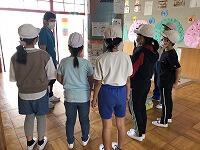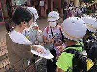 いつもの一斉下校の時のように昇降口前に並んで、児童指導主任の先生から、今日の訪問の目的や確認してくることなどの話を聞きました。