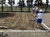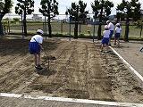 しばらく使っていなかったので、砂が固まってしまい、カチカチの状態。でも、みんなで力を合わせて頑張ったので、柔らかくなりました。