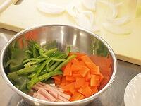 1・2時間目には、6年生が家庭科室で調理実習「いろどりいため」をしていました