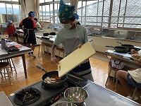 例年なら、4人程度のグループで、一つの献立を役割分担して作るのですが、感染予防対策で、一つの調理台を2人で使い、「自分の分を自分で作って試食する」ことにしています。同じ班の友達や、隣の調理台の友達との教え合いも見られ、子どもたちの“学び合い”は成立しています。学級を半分にして、2回に分けて実習するので、時間は2倍かかってしまいますが、「自分で」作るよさは、たくさんあることに気付きました。