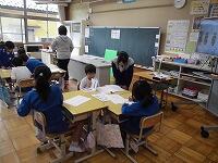 授業参観で発表した町探検のまとめを、2年生が1年生に見せました。