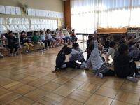1年生は、真剣に聴いてくれました。お礼に秋祭りに招待してもらえることになり、うれしい2年生です。