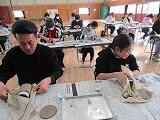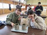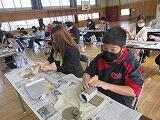 11月18日(火)に6年生の親子学習で『いぶき焼き』の陶芸体験をしました。にっこり