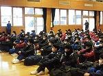 和やかな雰囲気の中、真剣に話を聞く小学6年生。