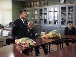 こちらは代表生徒による花束贈呈の様子。たくさんの拍手が起きました。