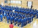 温かい拍手の中、「3年生入場」。会に先立ち、校長先生と新生徒会長からあいさつがありました。