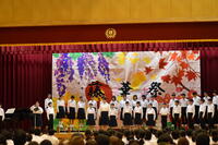 校歌斉唱、『藤色の物語(ストーリー)』。(校歌に題名がついているのが素敵です!)