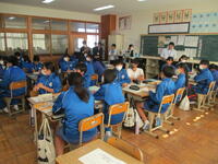6月には中学校教員が小学校を訪問しました。今回はその「お返し」というわけです。