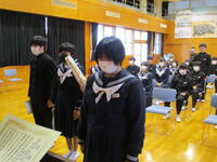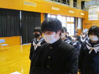 この日は第1回目ということで、生徒会長や生徒指導主事から卒業式への「思い」や「臨み方」等の話があり、式の最中の姿勢についても皆でしっかりと整えました。