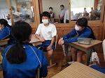 ソーシャルディスタンスを意識しながら班で話し合い、代表者が発表していきます。