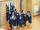 入場の後、担任の呼名に対し堂々と返事をして起立しました。
