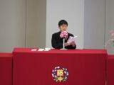 生徒の代表から歓迎の言葉を述べ、花束を贈呈しました。