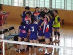 バレーボール部は、本校体育館を会場に試合を行いました。予選リーグの1試合目は、サーブもよく決まり、見事勝利しました。2試合目も、先に1セットを取ったのですが、2セット目、リードしていながら、途中でミスをした後から流れが変わってしまい、落としてしまいました。3セット目も頑張りましたが、相手チームの強力なスパイクに苦しめられ、最後持ち直してきたのですが、序盤の得点差が響き、惜しくも負けてしまいました。先輩達を応援していた1年生が涙を流していました。先輩達の思いを受け継ぎ、1、2年生にも目標を持って頑張ってほしいと思いました。