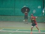女子はつがスポーツ運動公園テニスコートを会場に試合を行いました。男子が切り上げたので、女子も延期になったと思いきや、会場に行ってみると、雨が小降りになるのを待っていました。保護者の方が応援に見えていましたが、徐々に雨もやんできて、準々決勝を行うことになりました。3面同時展開。男子程は雨の影響を受けなかったのか、練習の時の調子で落ち着いて試合を行っていました。2-1で、ベスト4に進出です。ここで終わりかと思っていますと、なんと準決勝まで進めることになりました。相手は春の大会で藤岡中を破った小山中に勝って、ベスト4入りした南犬飼中でした。1ペアは見事に勝利。他の2ペアはどちらもファイナルゲームまで頑張りましたが、残念ながら勝利を収めることができませんでした。けれども、春の大会よりもよい内容の試合を展開していたので、この短い期間に頑張って練習したのが分かりました。また、団体で県大会に出場するわけですから、地区大会の改善点を確認して、県大会でも頑張ってほしいと思います。