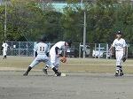 守備の様子。先行されてしまいましたが、声を出してお互いを鼓舞します。