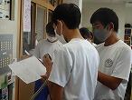 2年生は、教室で夏休みの生活について、クラスごとに確認し、夏休みのしおりを使って計画を立てていました。あるクラスでは、夏休み中の生活の心得を順番に生徒が読み合い、夏休み中に事故や事件に巻き込まれたり、誘惑に負けて問題行動を起こしたりしないように丁寧に確認していました。夏休み中に、3年生から2年生へ部活動のバトンタッチが行われます。3年生が築いてきた伝統を受け継ぎ、乗り越え、次の伝統を築いていくスタートが、多くの部で夏休み中に始まります。中堅学年として自覚を持ち、次に学校のリーダーとして学校を支えていくのは自分達だという気持ちを持って頑張ってほしいと思います。