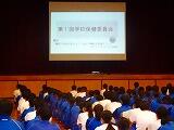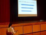 保健委員の生徒の司会進行で会は進めました。始めにアンケート調査に関する報告がありました。また、講師の先生に聞きたい質問を発表しました。講師の先生の質問に生徒は正直に挙手して反応していました。予定の時間をオーバーしてしまう講師の先生のお話に生徒は集中を切らさず耳を傾けていました。時間切れで生徒の質問に答えていただくことはできませんでした。残念。委員長さんがお礼を述べ、副委員長さんが閉会の言葉を述べて終了しました。
