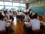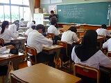 1年生の社会の授業、一所懸命先生の説明を聴いてノートをとっています。英語の授業でも生徒は丁寧にノートを整理していました。先生からの問題に、「答えは何?」友達と相談して頑張っていました。