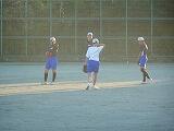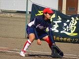 女子ソフトボール部も県大会出場です。ピッチングの練習に、キャッチャー役の生徒は足を怪我していながらも一所懸命取り組んでいます。みんな大きな声を出して気合いを入れています。