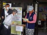 始めに10時から啓発活動のグッズを文化会館と公民館の入り口に分かれて来場者に配布しました。「犯罪のない社会を作る活動にご協力ください」「社会を明るくする運動の啓発活動です」と声を掛けながらグッズを来場者に手渡しました。雨のため来場者も少ないのではと心配されましたが、30分程で配布が完了。と見ると、男子の生徒が福祉まつりのバザーで買い物をした高齢者の方の荷物運びを手伝っていました。それを見ていた保護司の方が「自分たちからやっているのが素晴らしいね」とおっしゃっていました。