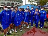 ソフトボール部。初めての県大会。やはり緊張したのか、初回と2回に守備でミスが重なってしまい、大量得点を許してしまいました。けれども、3回、4回と落ち着きを取り戻し、ダブルプレーで相手を0点に抑える場面もありましたが、得点を挙げられず、残念ながら5回でコールド負けとなりました。これから猛反撃だったのに残念でした。最初から最後までグランドの選手もベンチの選手も元気に声を出していました。来年の夏が楽しみです。