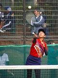 女子テニス部も個人戦で県大会に出場するペアがあります。フォームや打点を確認して、サーブ練習です。1年生大会も控えていて顧問の先生も熱心に指導しています。