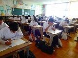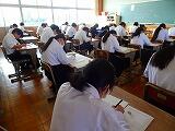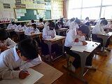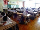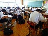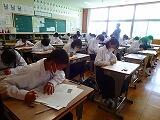 各教室で集中してテストに取り組んでいます。別室登校の生徒も、特別支援学級の生徒も、それぞれの教室でテストを受けました。下校時に保護者のお迎えを待っている生徒に、「テストどうだった?」と尋ねると、「前回よりできた」「○○(教科名)は難しかった」などといった声が聞かれました。明日は2日目、あと2教科頑張ってほしいです。