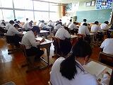 本日は学校公開週間3日目。雨のせいもあってか、本日も参観者はそれほど多くなく、ゆったりと授業をご覧いただけました。皆さん、生徒の学習に妨げにならないよう、教室の外から生徒の学習の様子を真剣に参観されていました。生徒が落ち着いて学習している様子をご覧いただき、安心していただけると、私たち職員も嬉しいです。