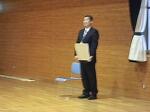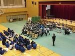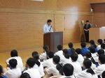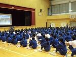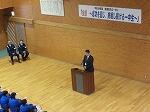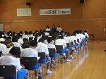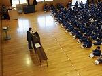 表彰式の後は、校長先生の講話と生徒指導主事からのお話です。