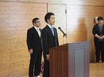 生徒代表の感謝の言葉、花束贈呈、交通指導員さんのお話、誓いの言葉と会は進みました。