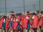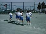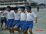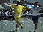 ソーラン節から組体操、白虎隊へと進んでいき、最後の締めは「三色対抗リレー」です。