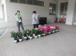 花センターの職員さんに挨拶をして説明を受けた後、1種類ずつ教室に持っていきました。