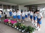 お花は生徒の各教室と職員室、図書室、保健室、職員玄関に飾ってあります。
