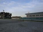 朝日に照らされた武道館と体育館がきらきらと輝き、生徒の気持ちを映しているようです。