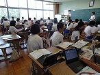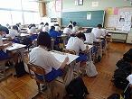技術の授業ではエネルギー問題についてグループで学習していました。藤岡中は2階上にソーラーパネルが設置されていますが、日差しの強い今日は随分役立っているのだろうと思います。